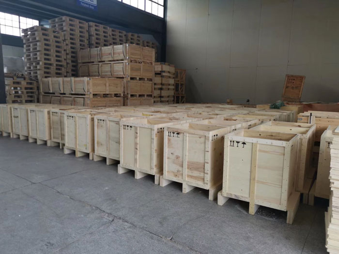框架組合木箱是將木板條或木方先釘合成各種結構型式的框架,這種框架實際是箱子的骨架,在框架上再釘上木板、膠合板等,再組合成箱子??蚣芙M合箱是一種裝配式木箱,先將被包裝物與底座固定,再裝配成六面箱。一般用于包裝重型貨物,貨物重量可達10~15t。